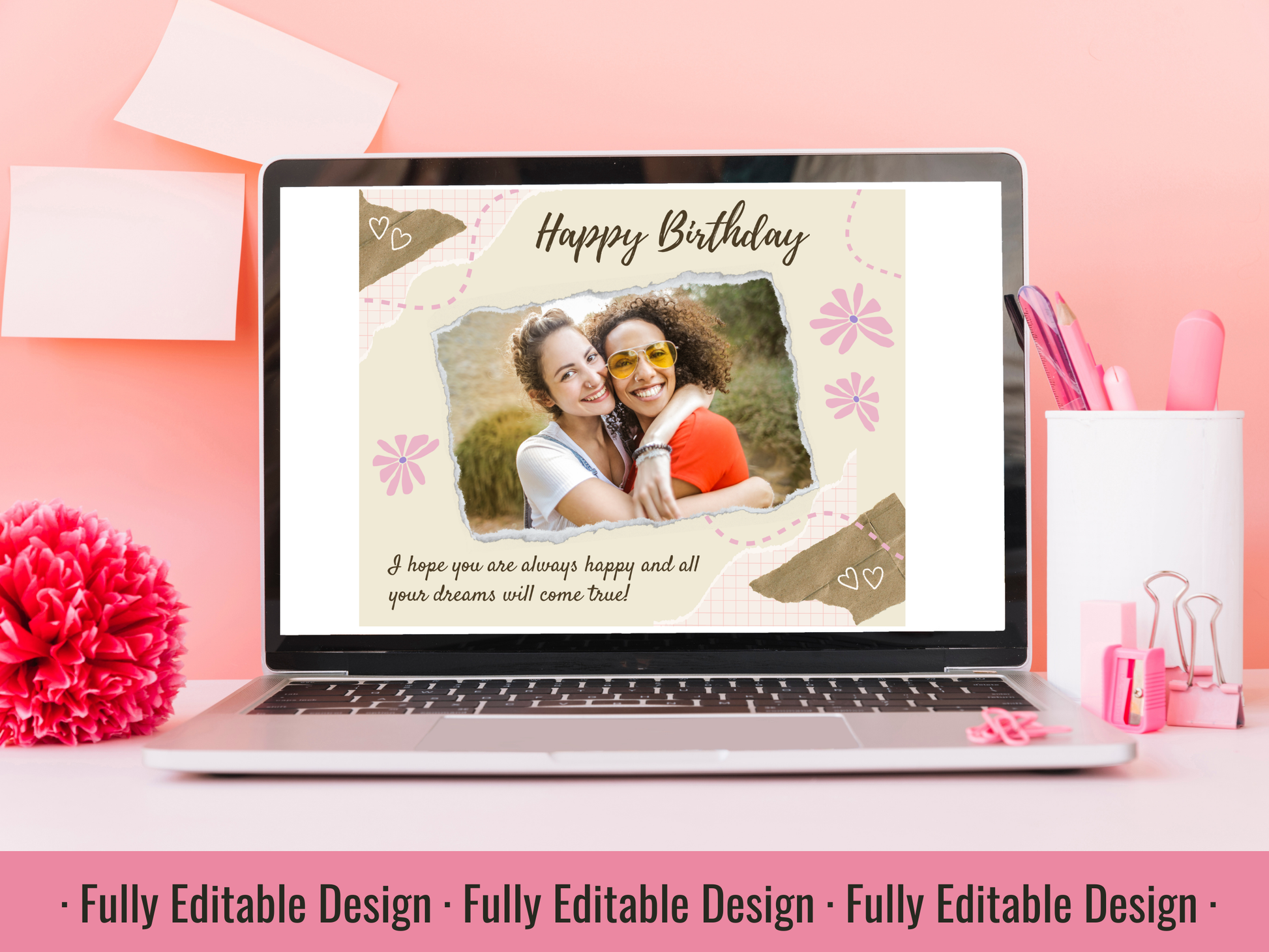 Birthday scrapbook templates. Designed for Canva, these editable templates are perfect for creating beautiful and heartfelt scrapbook pages to commemorate special moments. With charming designs and easy customization, these templates capture memories and crafting unique birthday gifts.