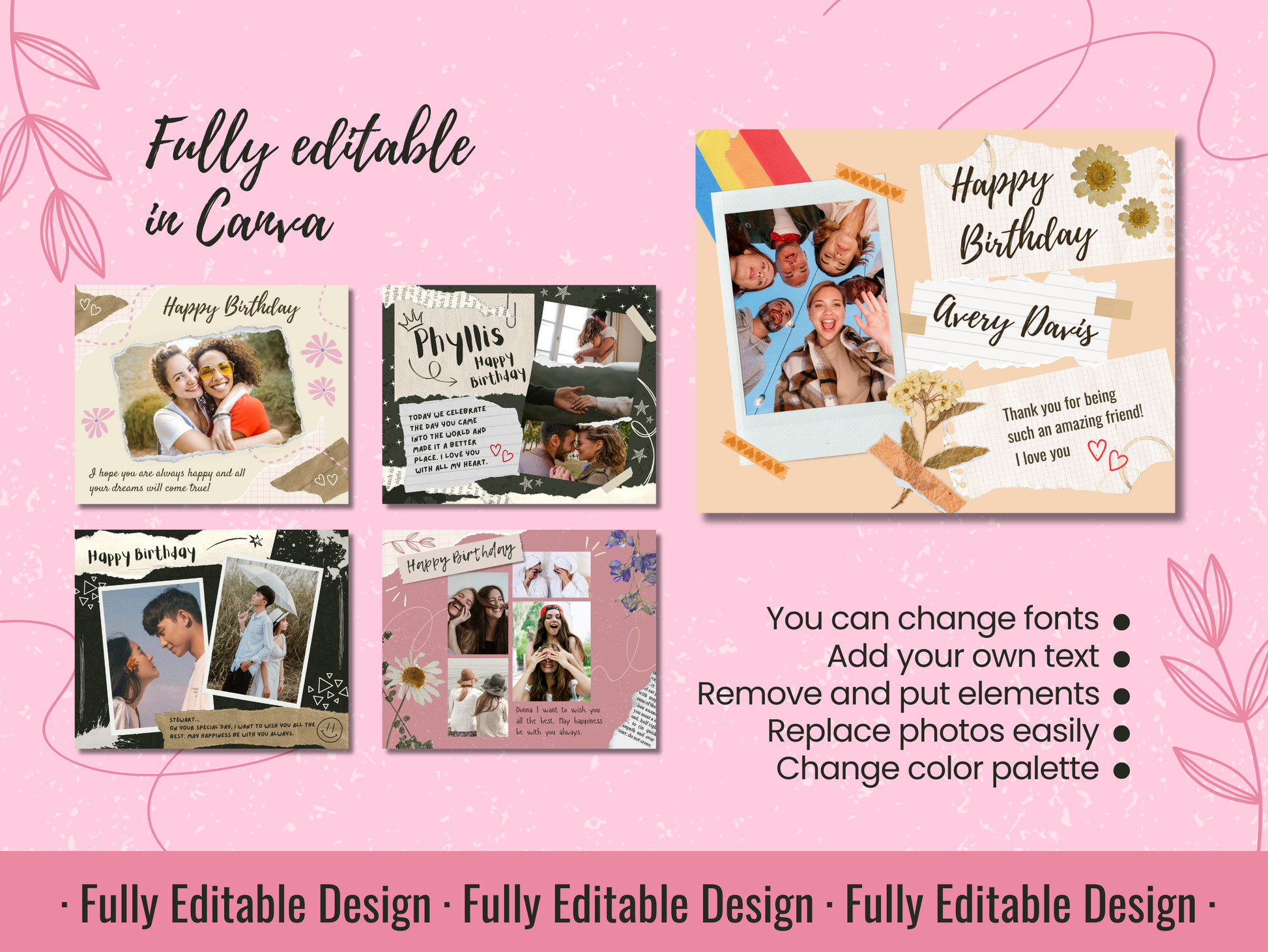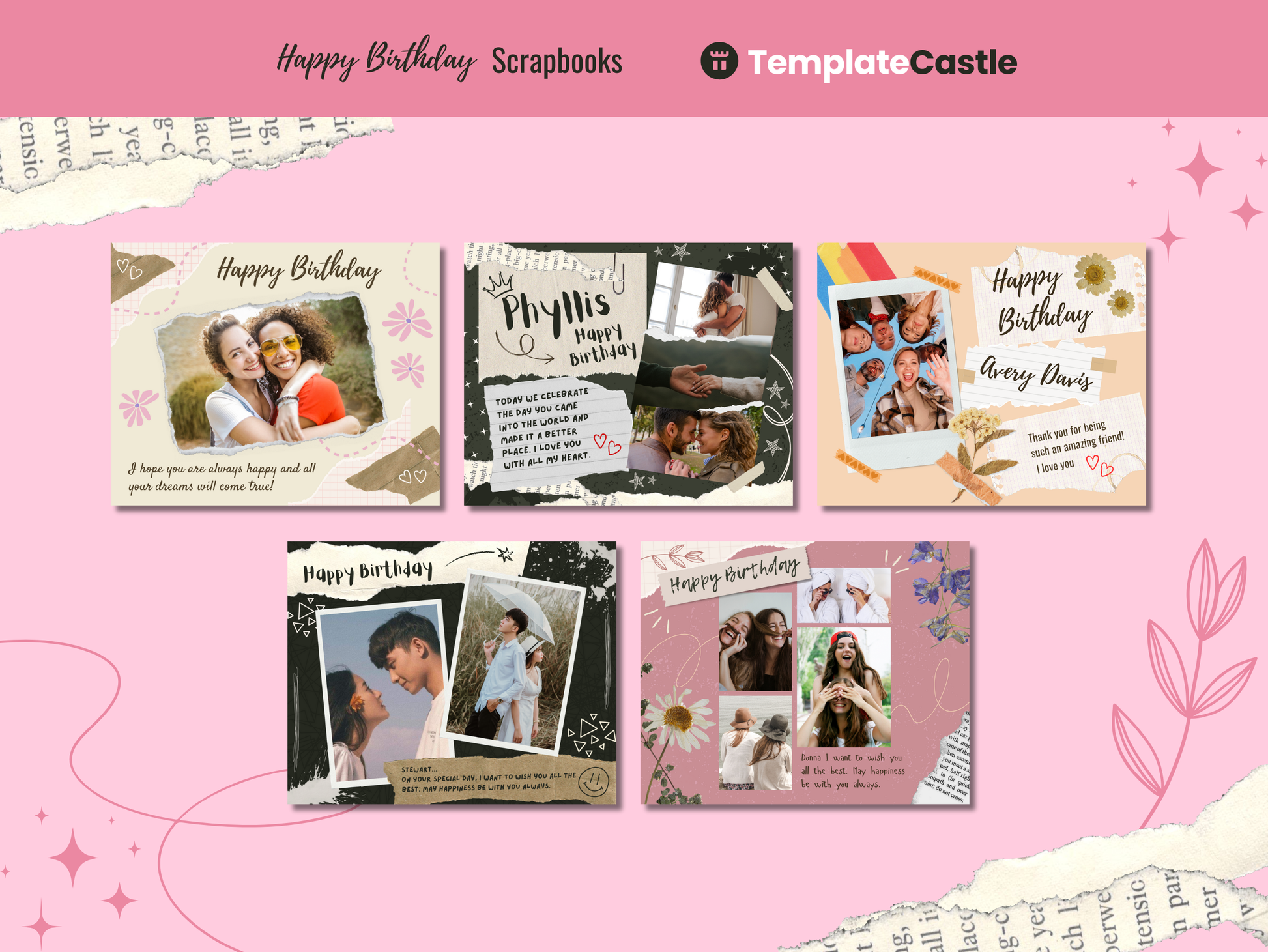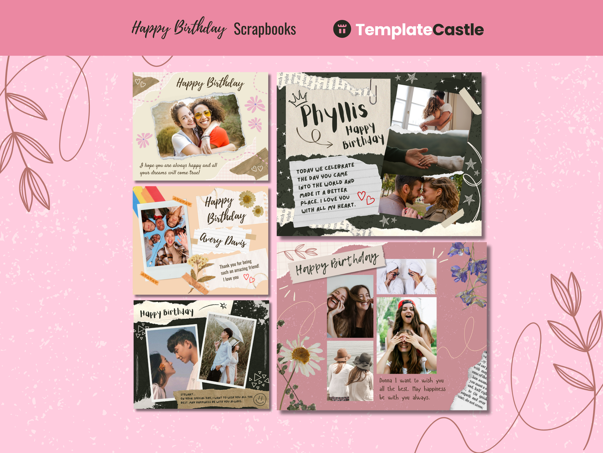 5 Happy Birthday Scrapbook Templates Editable Canva Scrapbook Happy Birthday Collage Photo Templates Digital Scrapbook Birthday Templates