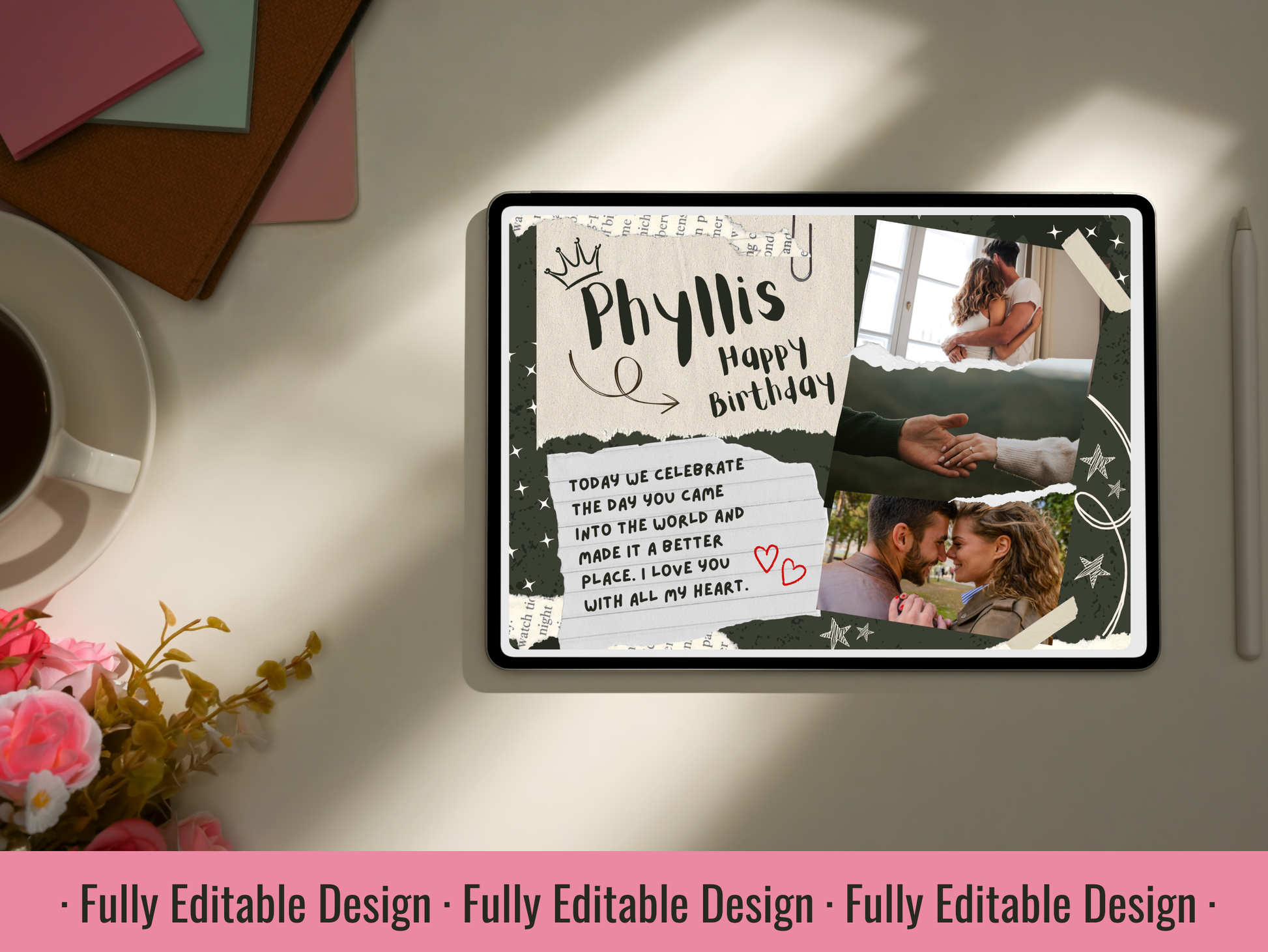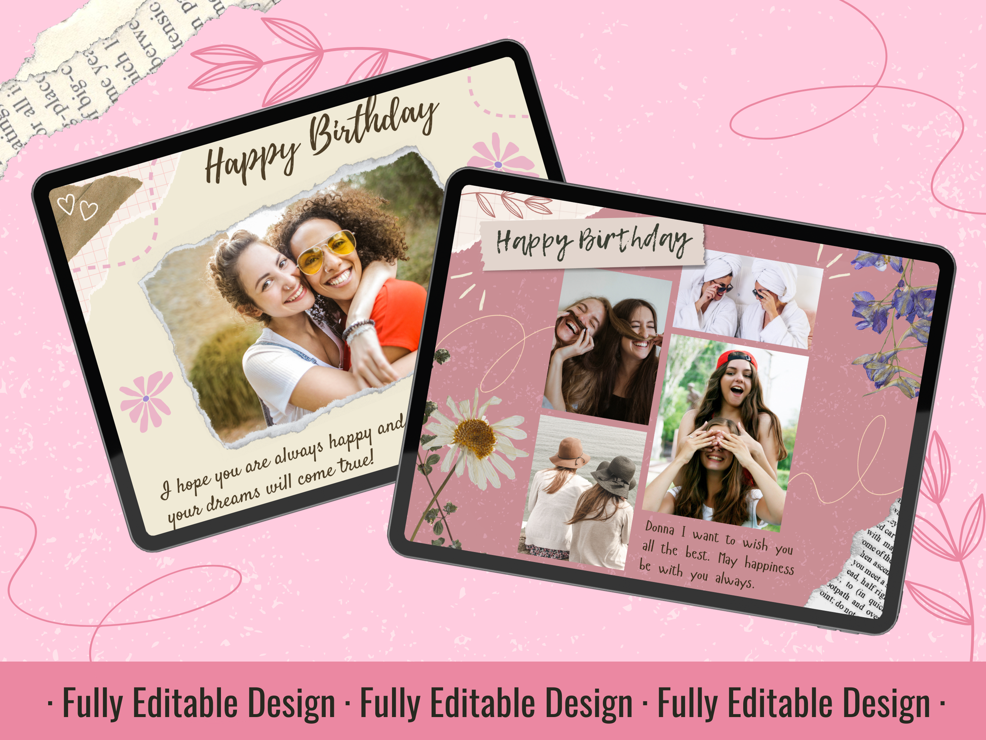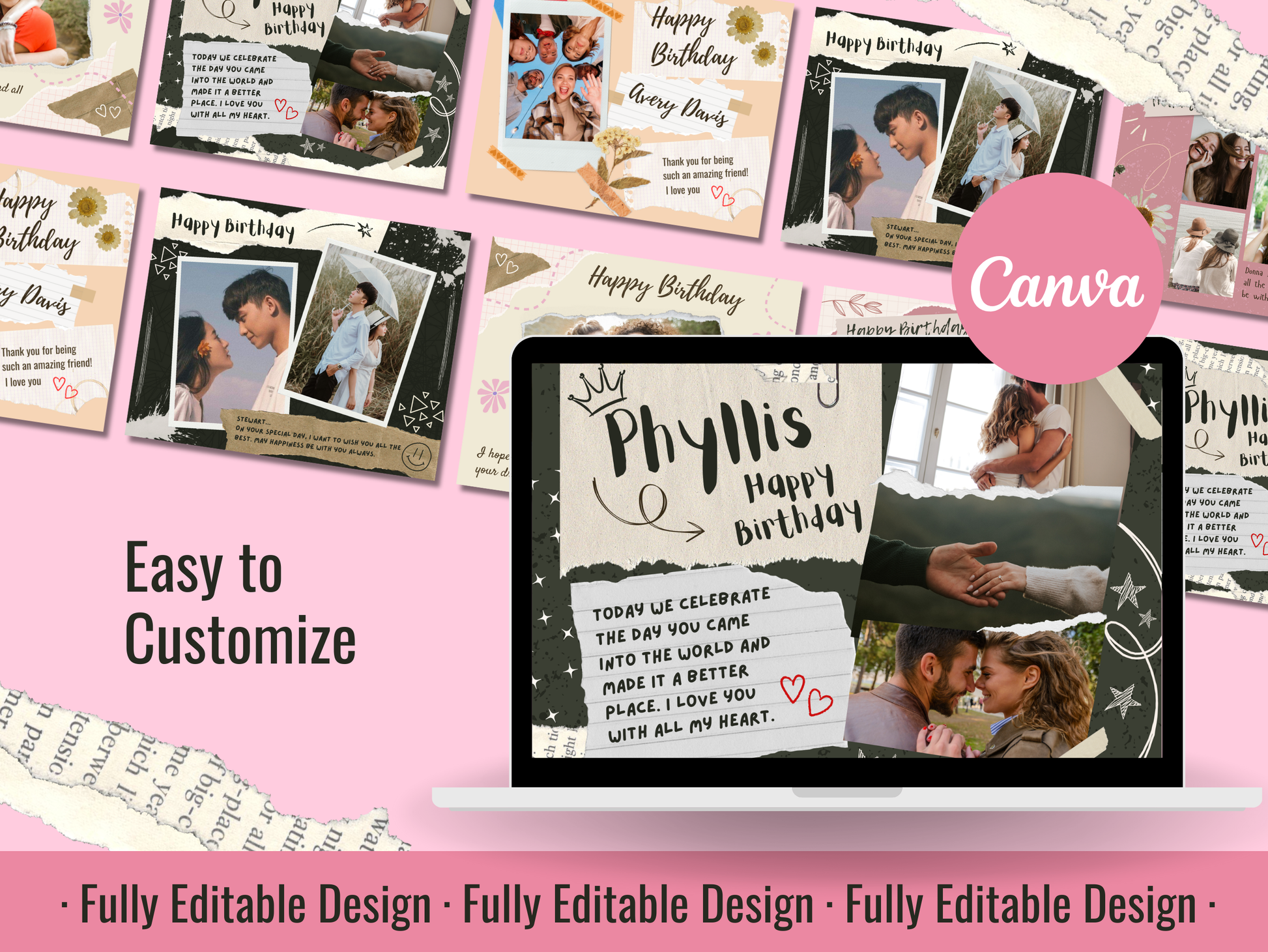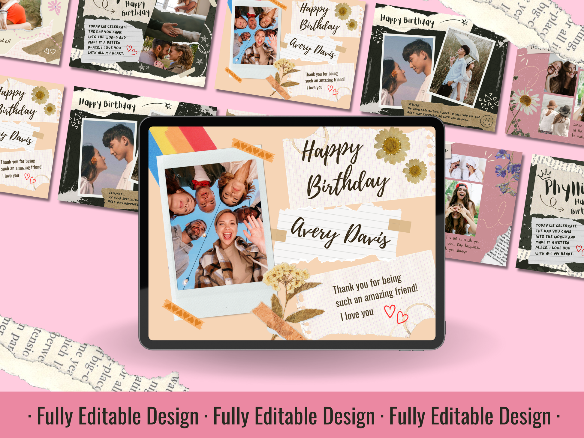 5 Happy Birthday Scrapbook Templates Editable Canva Scrapbook Happy Birthday Collage Photo Templates Digital Scrapbook Birthday Templates