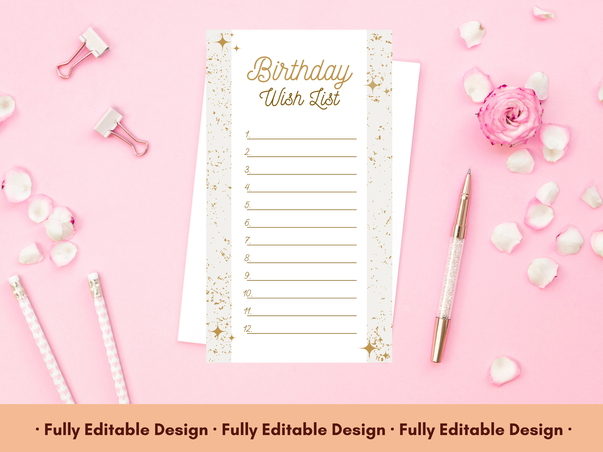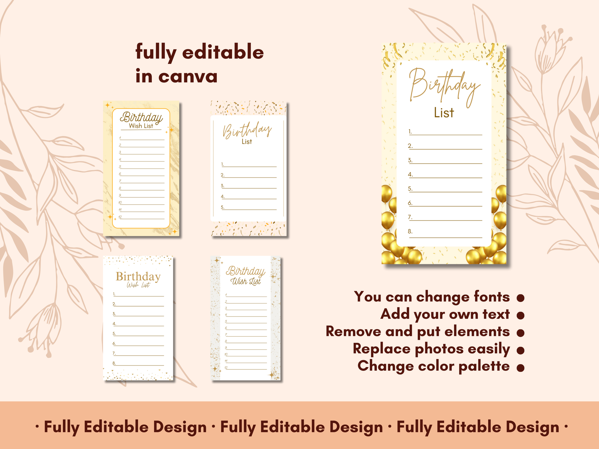 Birthday List Template Set. Perfect for creating Wish Lists, Gift Lists, and planning your special day, these templates feature elegant designs and are fully customizable in Canva. Ideal for anyone looking to keep their birthday plans organized and stylish.